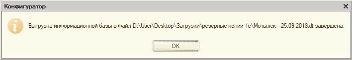 Далее необходимо дождаться окончания формирования резервной копии. Время ожидания зависит от характеристик компьютера и объёма выгружаемых данных.