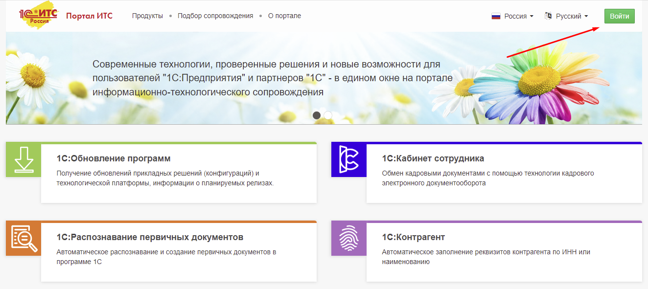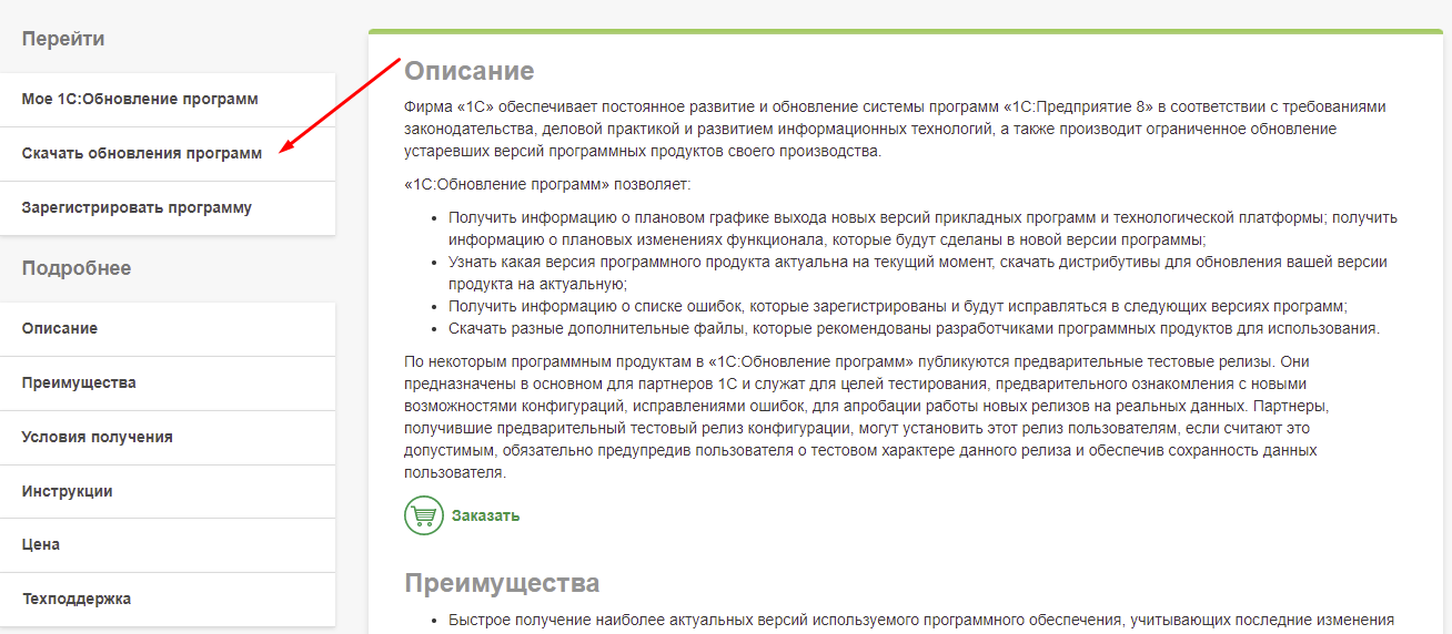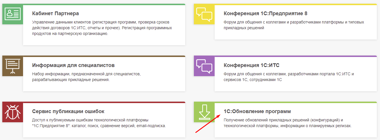 Для получения файла обновления обратимся к сайту поддержки. Можно, конечно, воспользоваться диском “1С:ИТС”, однако файлы обновления на нём могут быть неактуальными.