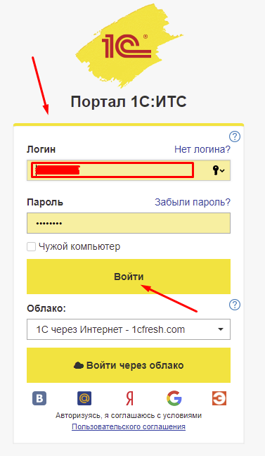 Далее заполняем форму входа своими данными учётки и ещё раз нажимаем “Войти”