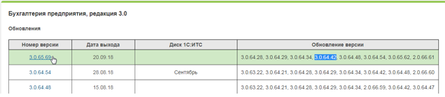 Далее в таблице доступных обновлений находим самое последнее обновление ( выделена зелёным цветом в списке );