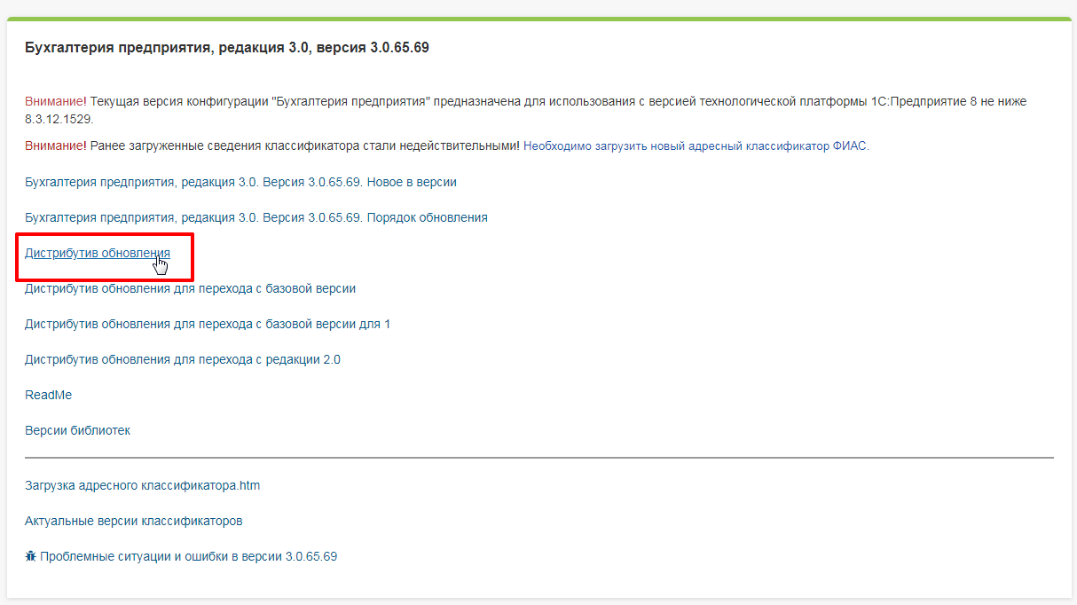 На странице с подробным описанием обновления открываем ссылку “Дистрибутив обновления”;