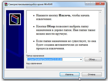 После чего открываем скачанный архив и жмём кнопку “Извлечь”, не меняя путь извлечения;