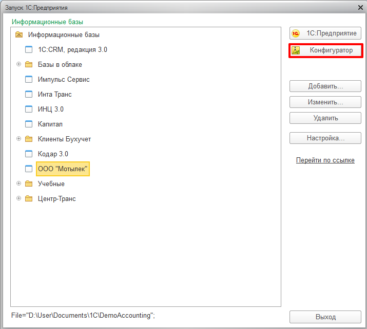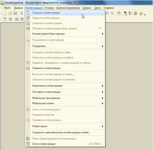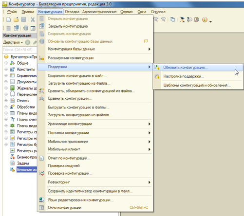 Как вручную обновить конфигурацию 1С в режиме Конфигуратора