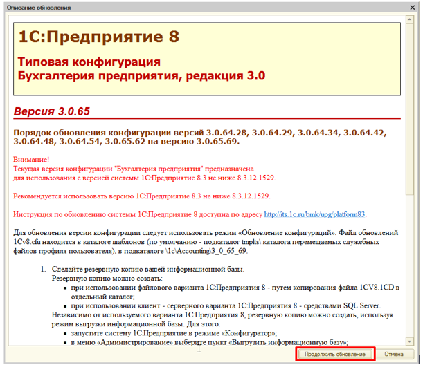 В следующем окне представлена вся информация об обновлении. Также жмём кнопку “Продолжить обновление”;