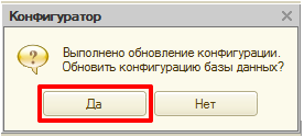 По окончанию обновления будет выведено окно с вопросом об обновлении конфигурации. Соглашаемся, нажав кнопку “Да”;