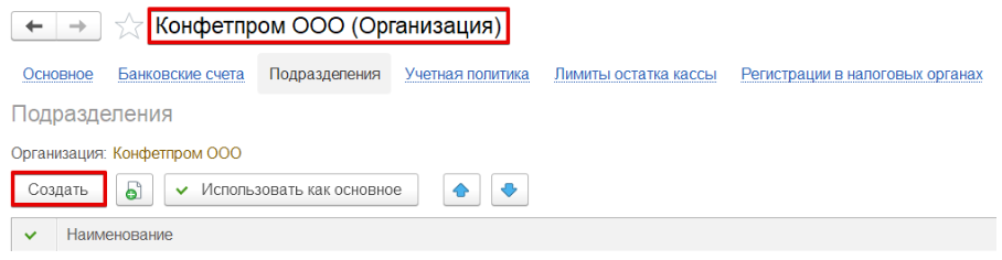 Так как подразделение новое, в предложенном окне нажимаем кнопку «Создать».