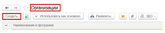 В соответствующем справочнике организаций нажмем кнопку "Создать".
